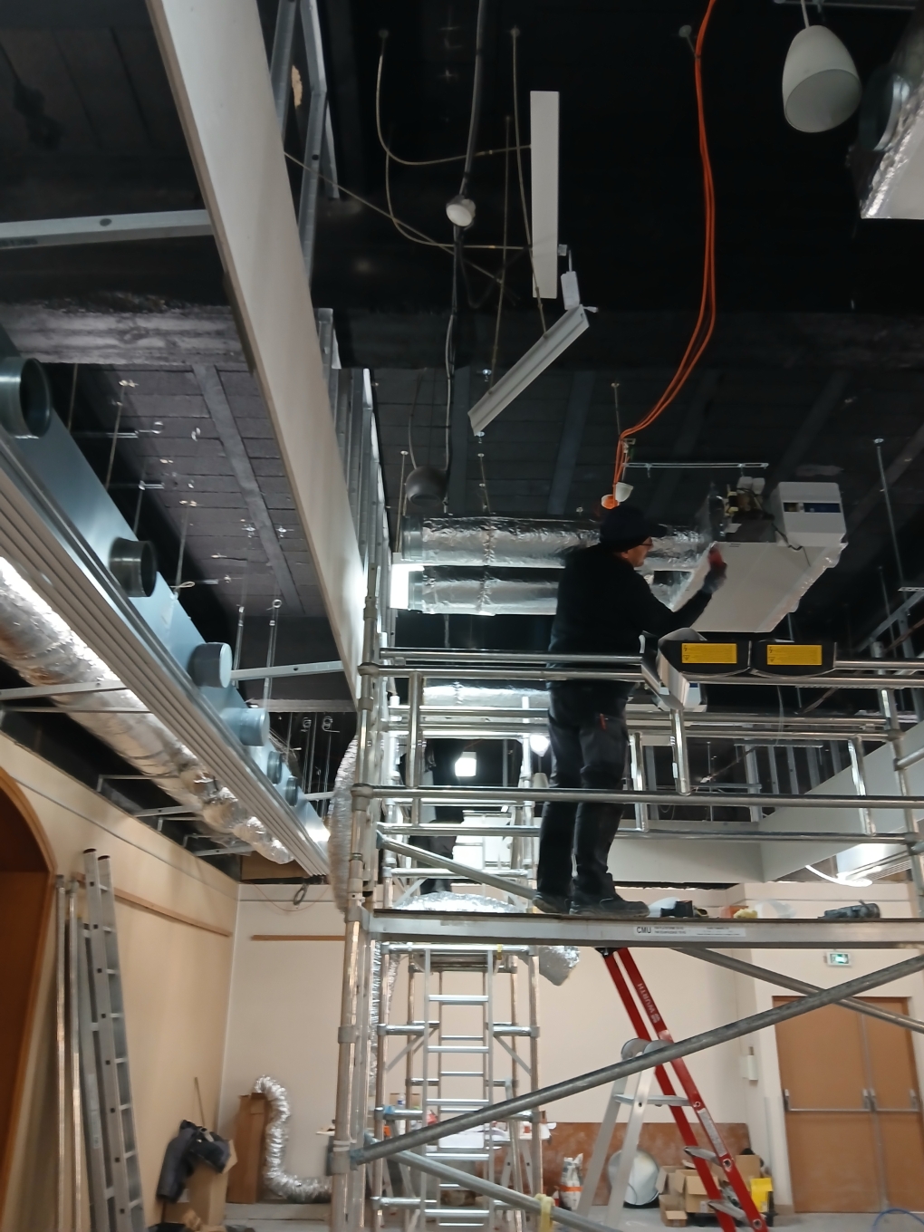 Intervention à la Maison de Nuits Installation des gaines et des soufflants au rez-de-chaussée dans le cadre de la mise en service de la nouvelle